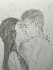 Jade’s is symbolic of her hair comb with blood dripping off it.